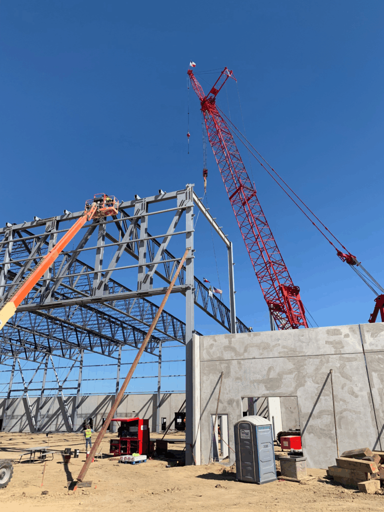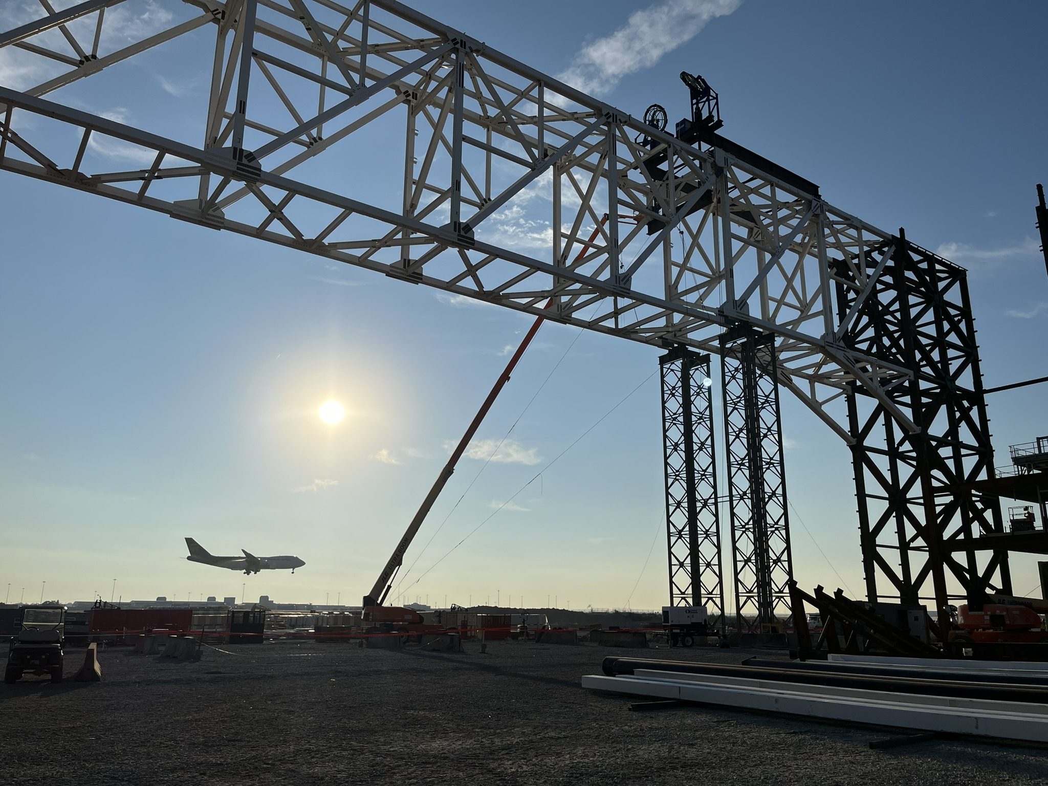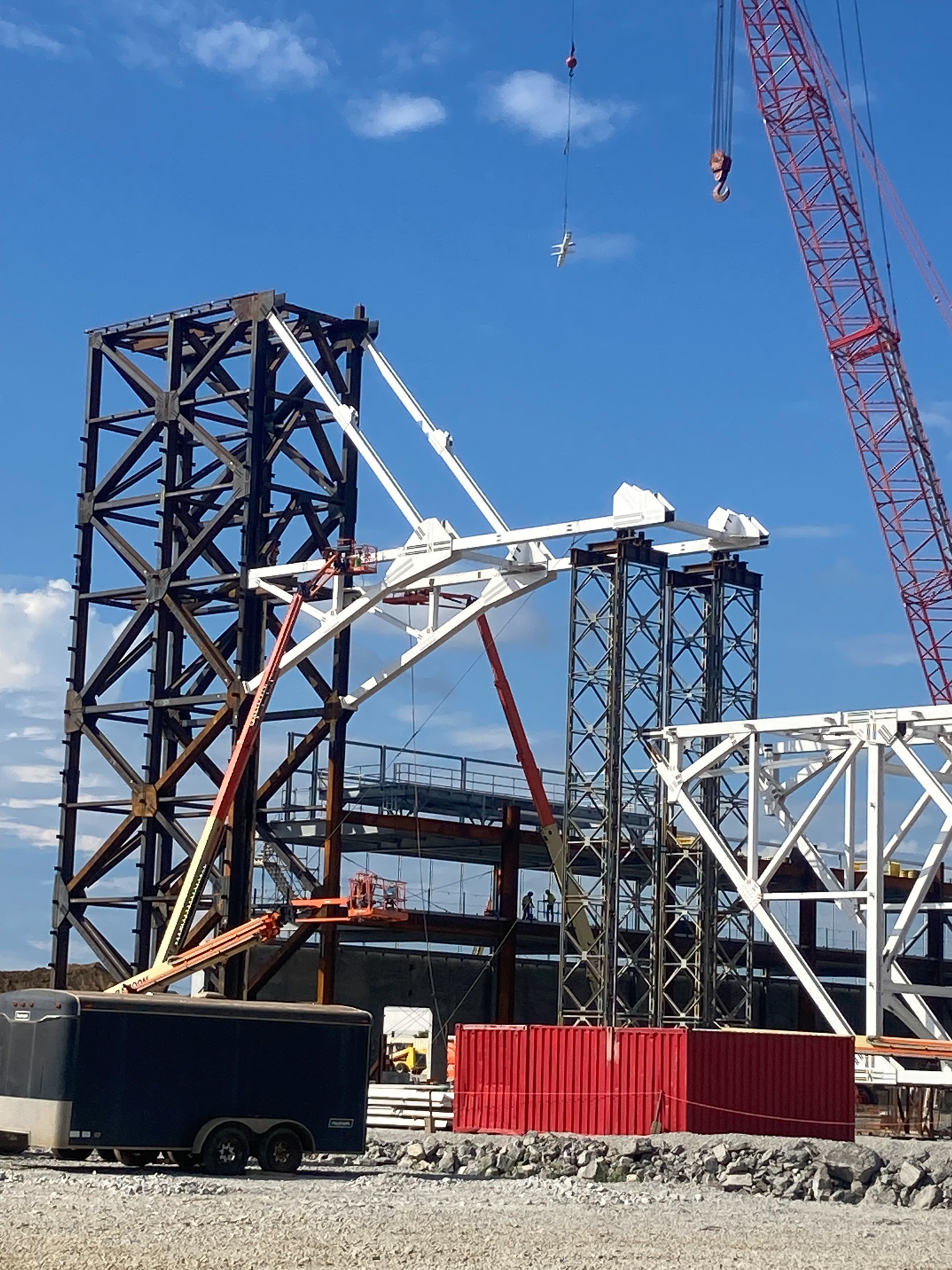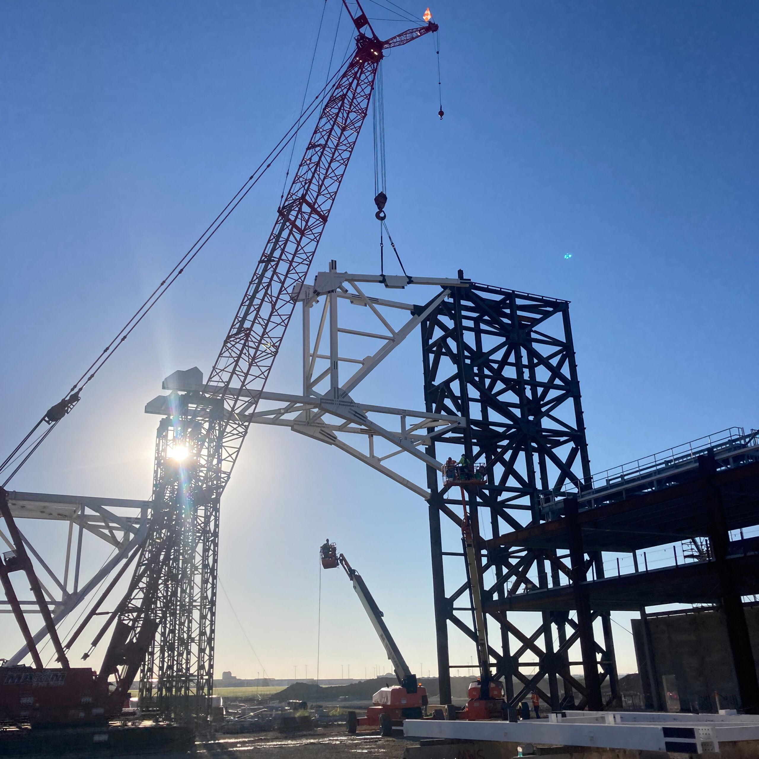 Expanding production at a new $220 million airport hangar at Louisville International Airport accommodates UPS’ growing fleet of 747 aircraft. The two-bay hangar is 275,000 sf and includes seven ramp parking positions for its planes. For Midwest Steel, our firm provided erection engineering services including one of the firm’s largest lifts—a 380-foot-long box truss weighing 850 tons—with the use of hydraulic strand jacks. In addition to erection engineering services, we also designed the necessary supporting and lifting members, which included shoring head arrangements, strand jack lifting beams, and strand jack support frames.